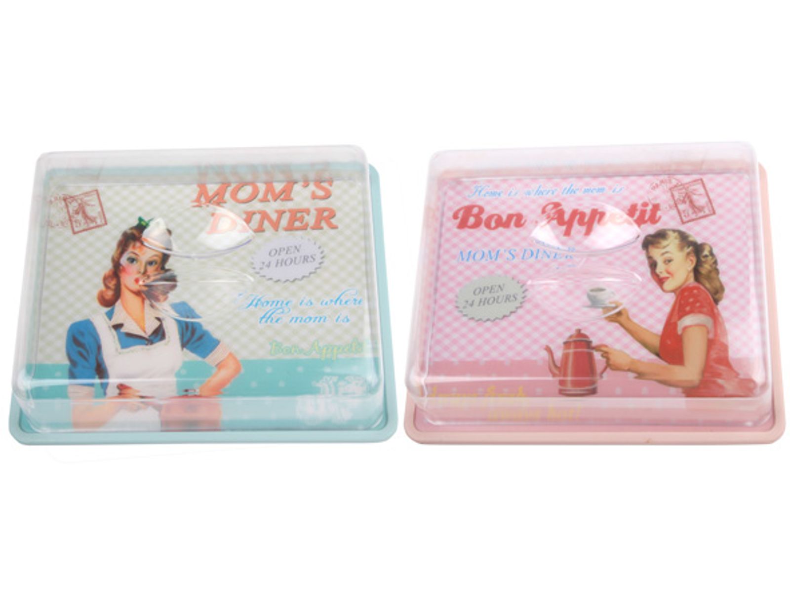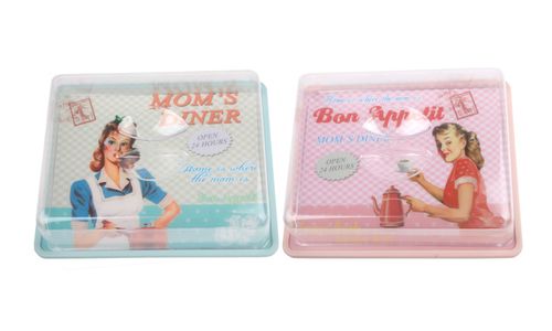 Retro Mom Cake Box Met Plastieken Deksel 2ass 25,5x20,5xh8cm