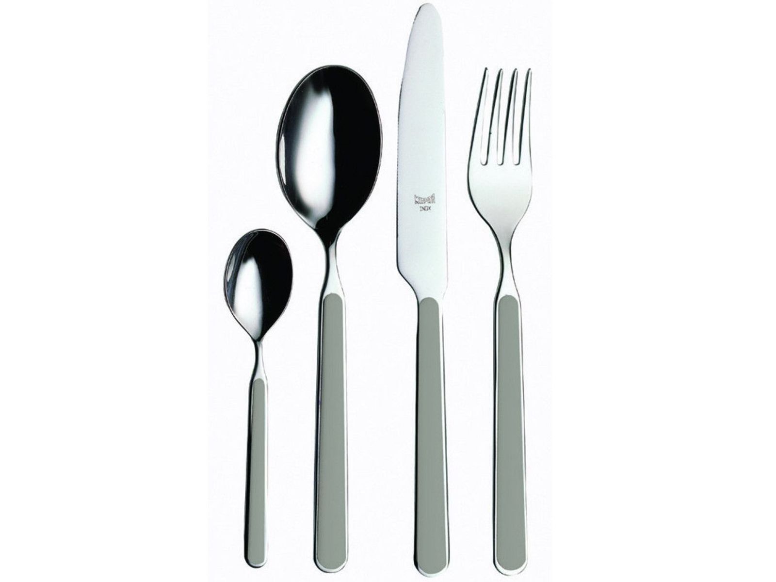 Wilt u wel eens iets anders op tafel? Voor een feestelijke gelegenheid, voor buiten, op vakantie, bij een picknick? Dan is Mepra Fantasia het antwoord! Een bestek dat u zelf kunt samenstellen. Alles in 1 kleur? Meerdere kleuren door elkaar? Mes, lepel en vork samen in de kleur van het logo van uw bedrijf of club? Alles is mogelijk in deze besteklijn. De kleur van dit bestek is grijs.
