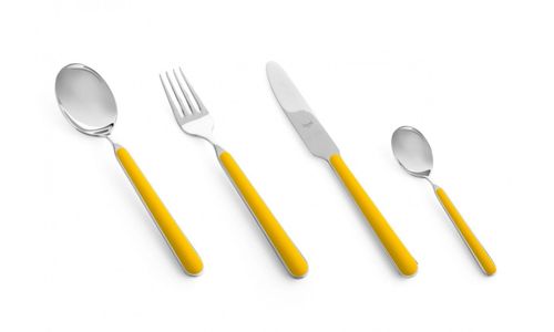 Wilt u wel eens iets anders op tafel? Voor een feestelijke gelegenheid, voor buiten, op vakantie, bij een picknick? Dan is Mepra Fantasia het antwoord! Een bestek dat u zelf kunt samenstellen. Alles in 1 kleur? Meerdere kleuren door elkaar? Mes, lepel en vork samen in de kleur van het logo van uw bedrijf of club? Alles is mogelijk in deze besteklijn. De kleur van dit bestek is zonnebloem.