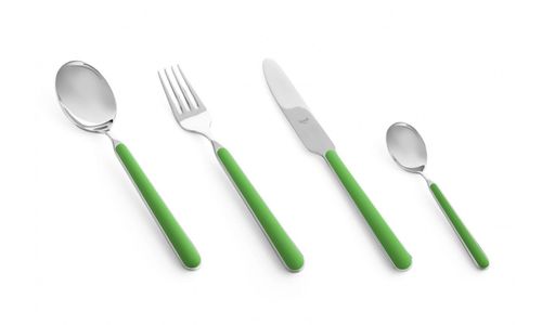 Wilt u wel eens iets anders op tafel? Voor een feestelijke gelegenheid, voor buiten, op vakantie, bij een picknick? Dan is Mepra Fantasia het antwoord! Een bestek dat u zelf kunt samenstellen. Alles in 1 kleur? Meerdere kleuren door elkaar? Mes, lepel en vork samen in de kleur van het logo van uw bedrijf of club? Alles is mogelijk in deze besteklijn. De kleur van dit bestek is appelgroen.