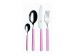 Wilt u wel eens iets anders op tafel? Voor een feestelijke gelegenheid, voor buiten, op vakantie, bij een picknick? Dan is Mepra Fantasia het antwoord! Een bestek dat u zelf kunt samenstellen. Alles in 1 kleur? Meerdere kleuren door elkaar? Mes, lepel en vork samen in de kleur van het logo van uw bedrijf of club? Alles is mogelijk in deze besteklijn. De kleur van dit bestek is roze.