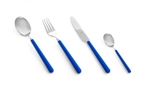 Wilt u wel eens iets anders op tafel? Voor een feestelijke gelegenheid, voor buiten, op vakantie, bij een picknick? Dan is Mepra Fantasia het antwoord! Een bestek dat u zelf kunt samenstellen. Alles in 1 kleur? Meerdere kleuren door elkaar? Mes, lepel en vork samen in de kleur van het logo van uw bedrijf of club? Alles is mogelijk in deze besteklijn. De kleur van dit bestek is staalblauw.