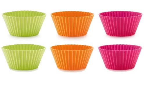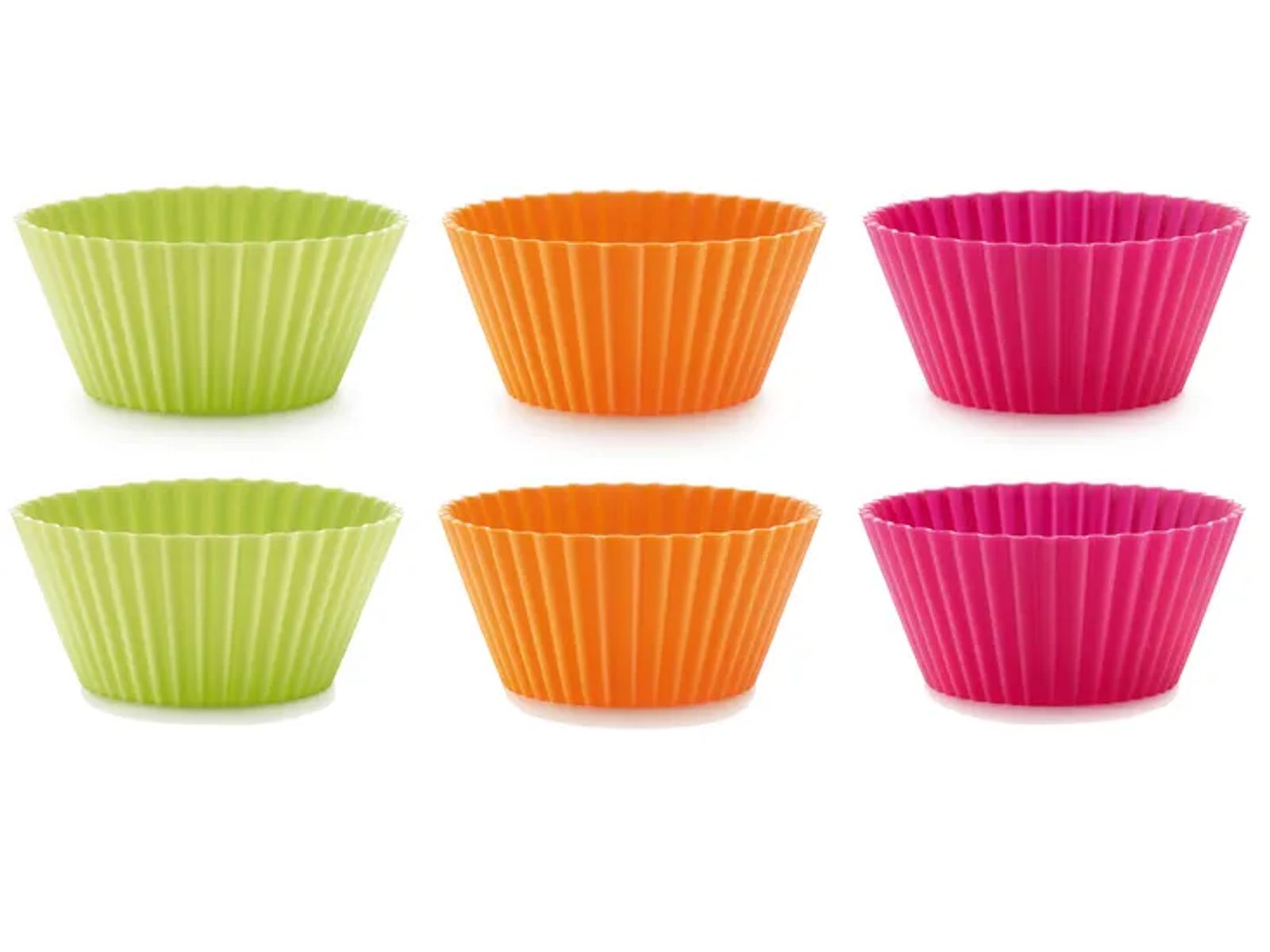 Set van 6 geribde muffinvormen uit silicone roze, oranje en groen ø 7cm H 3.5cm