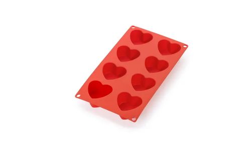 bakvorm uit silicone voor 8 hartjes rood 5.1x6.3x3.5cm