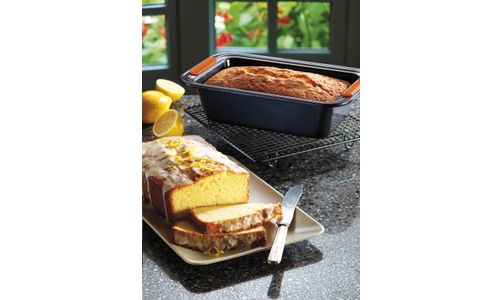 Perfectioneer uw favoriete taart- en broodrecepten in deze handige rechthoekige cakevorm. De klassieke vorm biedt prachtige resultaten en dankzij de hittebestendige siliconen handgrepen kunt u uw creaties veilig en eenvoudig met ovenhandschoenen in en uit de oven tillen.