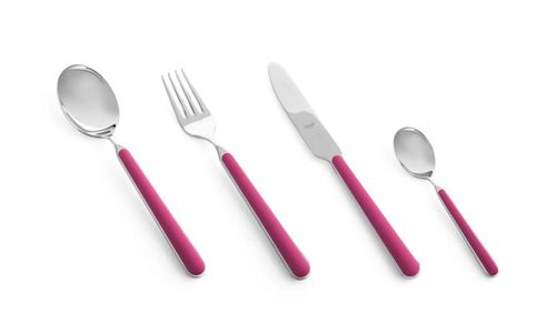 Wilt u wel eens iets anders op tafel? Voor een feestelijke gelegenheid, voor buiten, op vakantie, bij een picknick? Dan is Mepra Fantasia het antwoord! Een bestek dat u zelf kunt samenstellen. Alles in 1 kleur? Meerdere kleuren door elkaar? Mes, lepel en vork samen in de kleur van het logo van uw bedrijf of club? Alles is mogelijk in deze besteklijn. De kleur van dit bestek is roze.