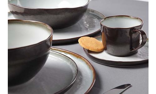 Licht-donkercontrast en organische stijl zijn de trefwoorden van deze collectie in aardewerk. Ofwel kiest men voor Plato om oriëntaalse gerechten te presenteren, omdat het servies op de oosterse cultuur geïnspireerd is, ofwel pikt men dit servies eruit omwille van de moderne gloed en experimenteert men met een totaal ander type gerechten.