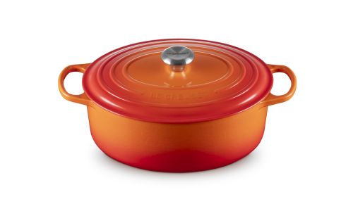 Dit ovale exemplaar is net zo veelzijdig als onze klassieke, ronde Stoofpan. De pan is groot genoeg om een hele lamsbout te braden en smal genoeg om ruimte over te laten in de oven voor extra bereidingen. Wat u ook serveert, dit belangrijkste hulpmiddel van de kok helpt u bij het creëren van verbluffende en smaakvolle gerechten.