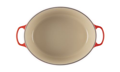 Dit ovale exemplaar is net zo veelzijdig als onze klassieke, ronde Stoofpan. De pan is groot genoeg om een hele lamsbout te braden en smal genoeg om ruimte over te laten in de oven voor extra bereidingen. Wat u ook serveert, dit belangrijkste hulpmiddel van de kok helpt u bij het creëren van verbluffende en smaakvolle gerechten.
