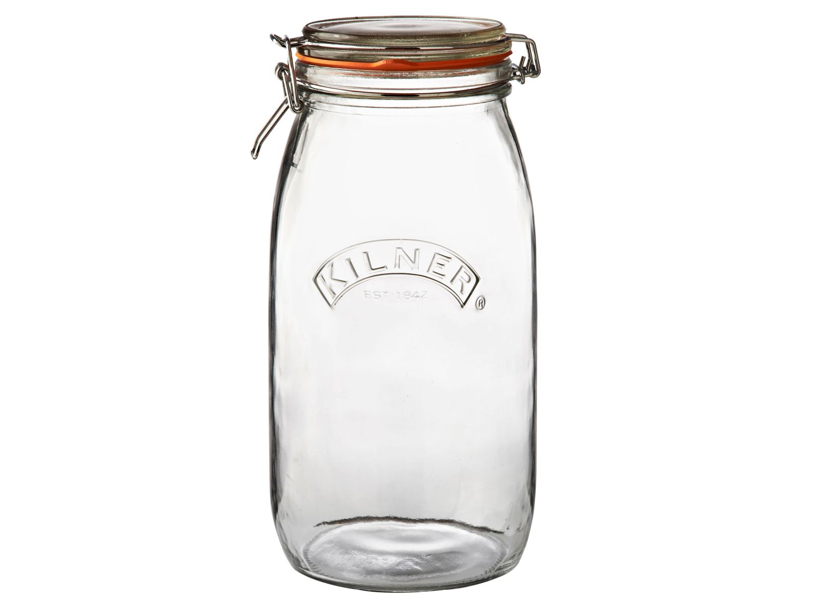 Kilner ronde glazen bokaal met beugelsleuting van 3 liter heeft het Kilner merk in reliëf aan de voorkant en is afgewerkt met een oranje rubberen afdichting. De potten zijn perfect voor het bewaren van droge levensmiddelen en voor het bewaren van fruit, jam en chutneys.