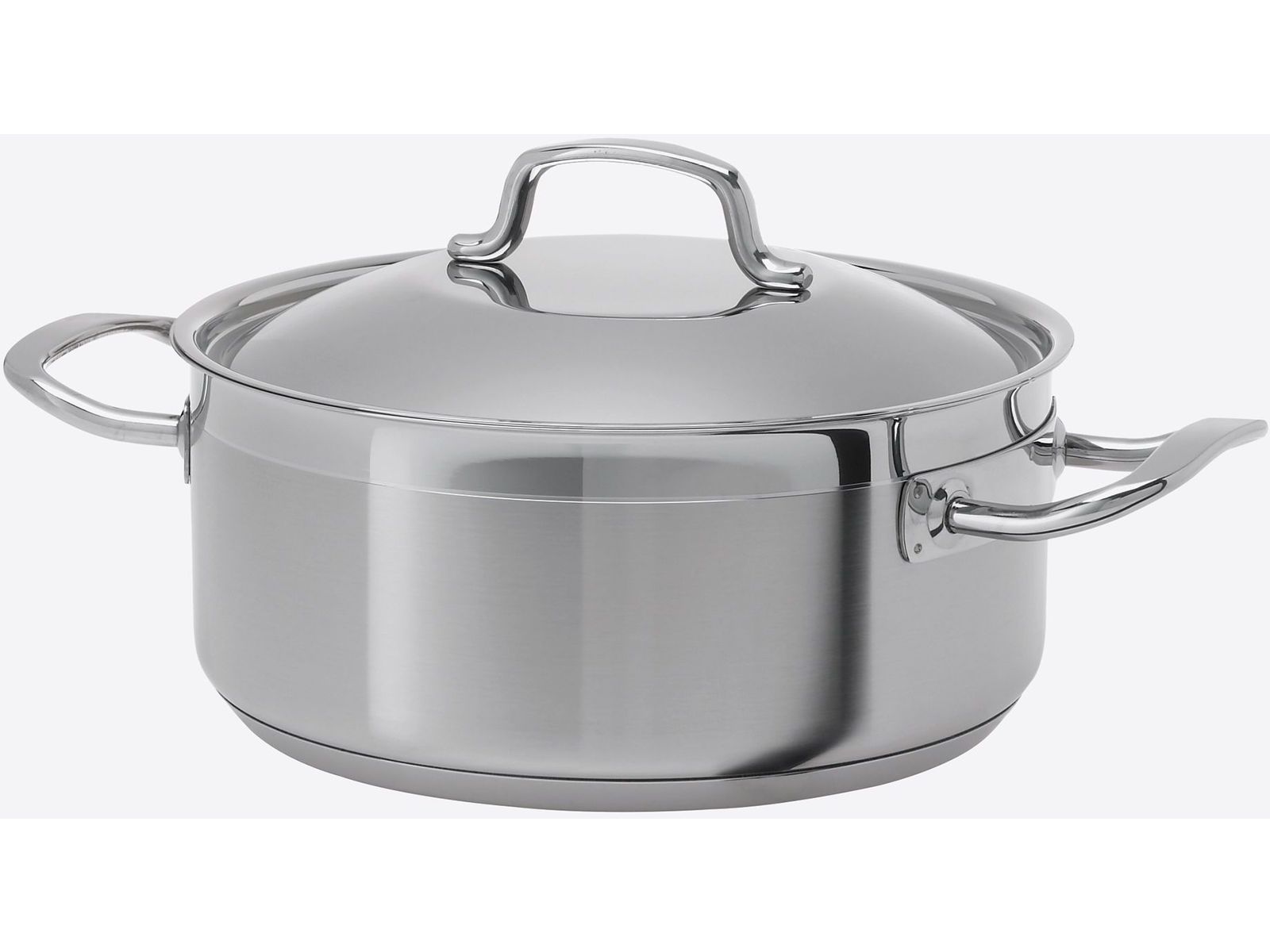 - - met ingekapselde en perfect platte bodem van 4mm in 3 lagen : binnenlaag uit roestvast staal 18/10, middenlaag uit aluminium en buitenlaag uit roestvast staal.