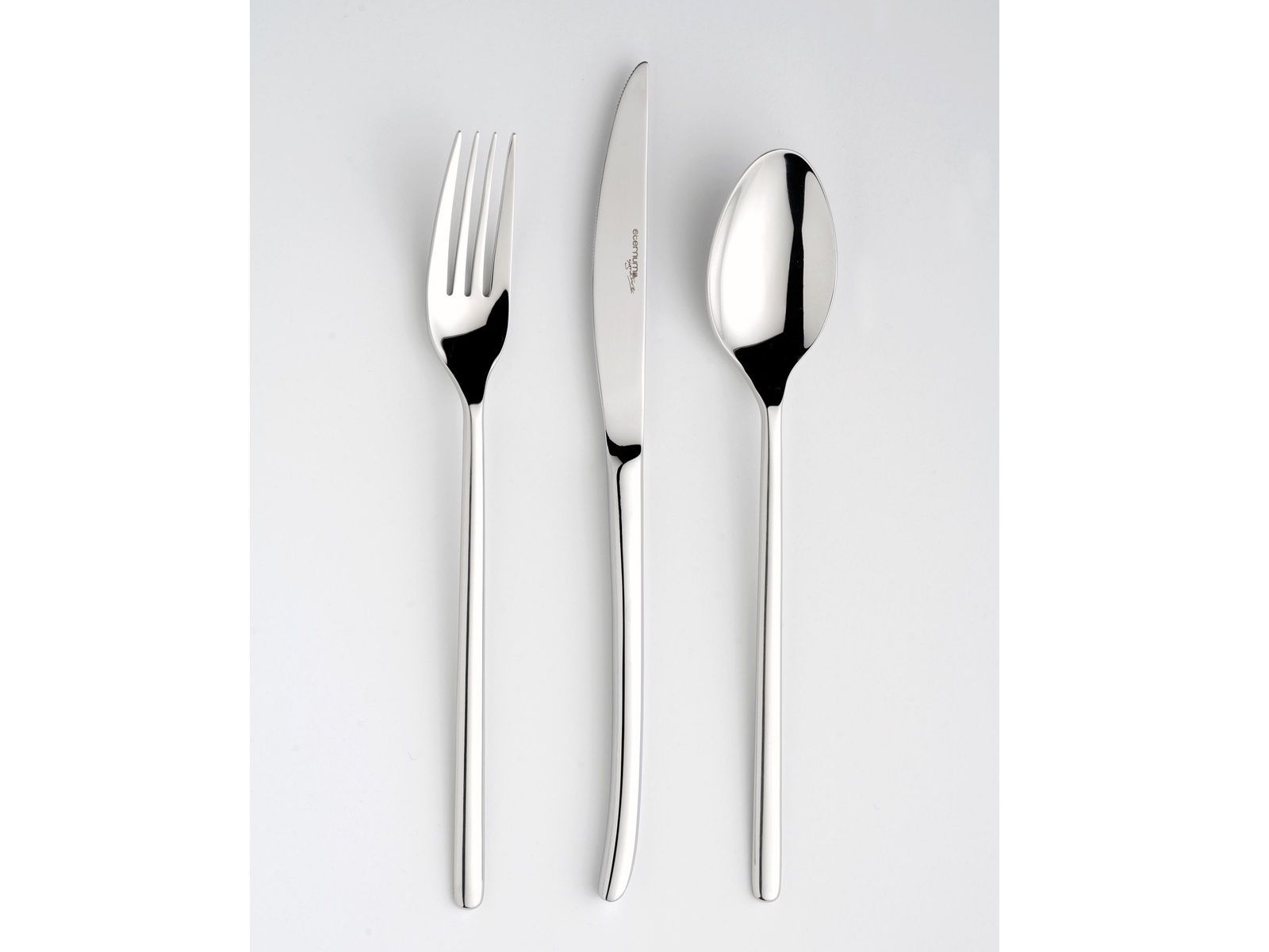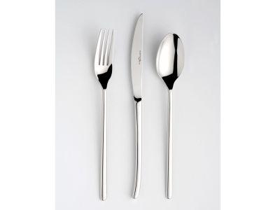 X-Lo weet te verleiden door zijn erg zuivere lijnen, stuk voor stuk in de lengte. Zijn groot formaat (tafelbestek 22 cm) past perfect bij borden met een grote diameter.