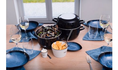 Sapphire, het kostbaar sieraad binnen ons gamma. Een uitgebreide collectie met de kleur van de gelijknamige edelsteen. De diepe tint aan de rand wordt lichter naar het midden toe en zorgt voor een vleugje mysterie, zoals een bepaald ingrediënt veelal voor een gast geheim blijft. Ook de grillige structuur van de steen in zijn ruwe vorm komt terug in het servies. Het materiaal is aardewerk.