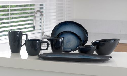 Sapphire, het kostbaar sieraad binnen ons gamma. Een uitgebreide collectie met de kleur van de gelijknamige edelsteen. De diepe tint aan de rand wordt lichter naar het midden toe en zorgt voor een vleugje mysterie, zoals een bepaald ingrediënt veelal voor een gast geheim blijft. Ook de grillige structuur van de steen in zijn ruwe vorm komt terug in het servies. Het materiaal is aardewerk.