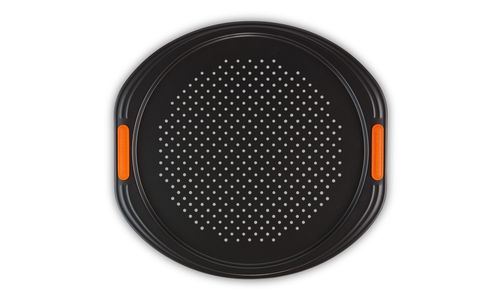 Met deze vakkundig ontworpen pizzaplaat van Le Creuset verkrijgt u iedere keer weer een heerlijk knapperige bodem. De opengewerkte bodem zorgt dat de lucht blijft circuleren voor een geweldig resultaat en de anti-aanbaklaag zorgt ervoor dat het eten eenvoudig loskomt, zodat u snel, eenvoudig en probleemloos pizza’s kunt serveren!