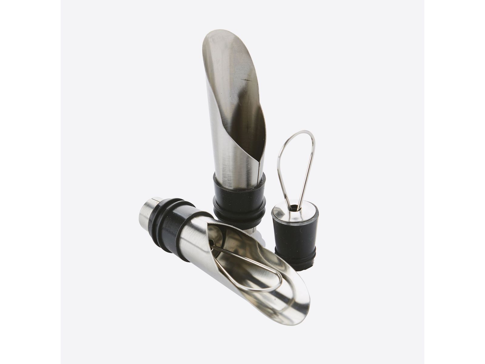 Schenk en bewaar je favoriete flesje rosé, rode of witte wijn zonder te druppen met deze set van 2 schenktuiten uit roestvast staal van Point-Virgule.