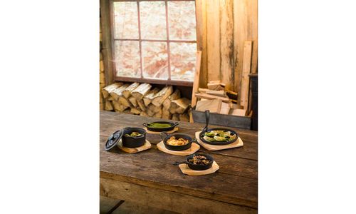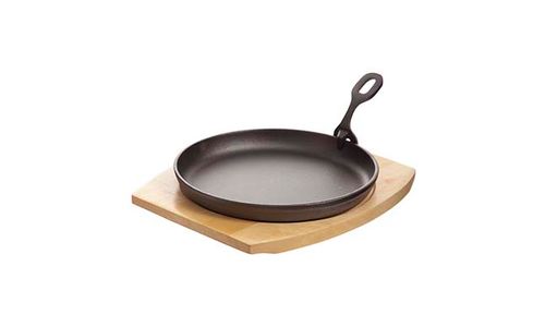 Gietijzer Bord 22cm Plankje Gecoat Grijpsteel