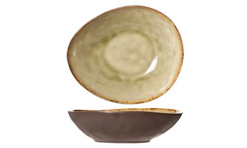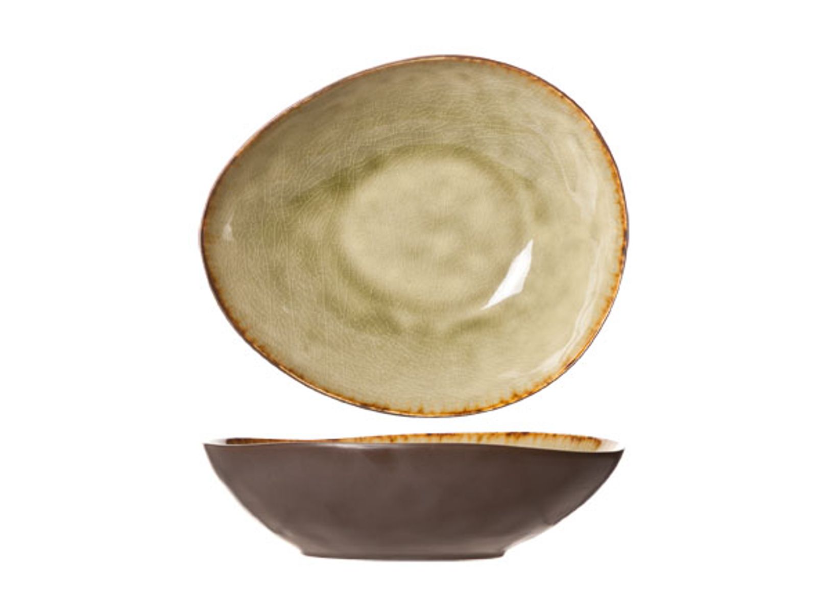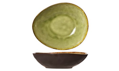 Diepe en zachte groenschakeringen, craquelé, contrasterende buitenkant, pittige rand en organische vorm. Niet alleen het lijstje van design eigenschappen is lang, maar ook het assortiment. U kunt deze aardewerken collectie immers gebruiken van apero tot dessert.