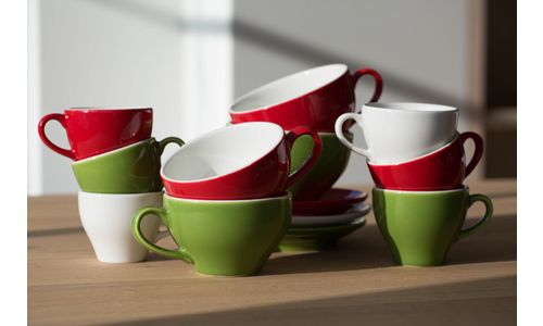 De Barista collectie fleurt de tafel op door haar mooie kleurenassortiment. De glazuurlaag biedt extra stevigheid en zorgt voor een glanzende uitstraling. Het hoogwaardig porselein is beschikbaar in vier verschillende kleuren en is magnetron- en vaatwasbestendig.