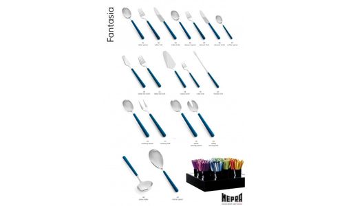 Kenmerken van dit bestek zijn originaliteit en Italiaans topdesign. Fantasia bestek is uitgevoerd in RVS 18/10 met handvatten in absoluut kleurvaste, onverslijtbare en vaatwasmachinebestendig ABS-kunststof.