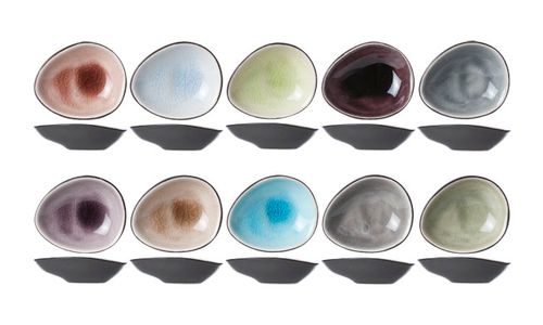 7 formaten, 10 kleuren. Organische schaaltjes voor kleine hapjes en borden voor de grotere mooi dresseerbare bereidingen. Een bonte mengeling van 10 speciale tinten, als versterkend element bij het kleurrijke voedsel van verschillende continenten dat doorgaans bij foodtrucks op de kaart staat. Streetfood Festival is vervaardigd uit aardewerk.