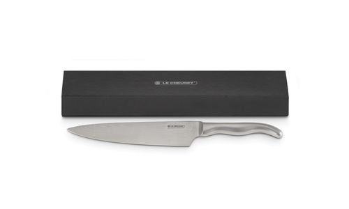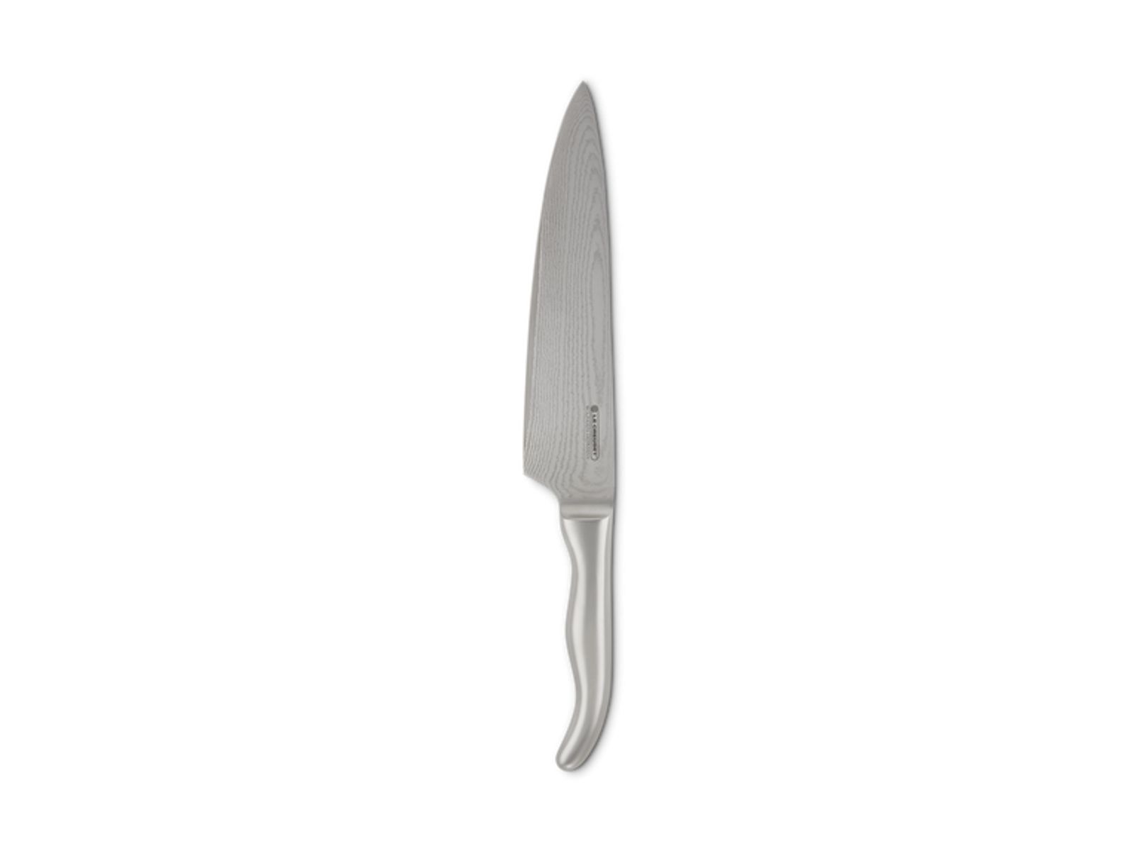 Snijd in plakken en blokjes als een expert met dit multifunctionele koksmes. Een taps toelopend lemmet met een vorm die de show steelt tijdens het hakken en snelle en precieze resultaten biedt. Dit vakkundig vervaardigde mes is voorzien van een lemmet van damaststaal, gecombineerd met een glanzende handgreep van rvs. Hij is stijlvol, sterk en scherp!