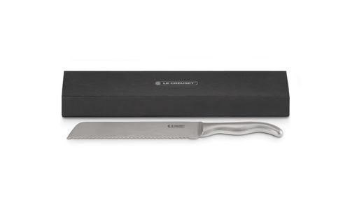 Toastbroad. Stokbrood. Gebak. Of zelfs geroosterd vlees in een deegkorst. Snijd alles moeiteloos met dit broodmes van Le Creuset. Hij is vakkundig vervaardigd en heeft een damaststalen lemmet met een superscherpe geschulpte rand. De handgreep van rvs geeft hem een stijlvolle uitstraling.