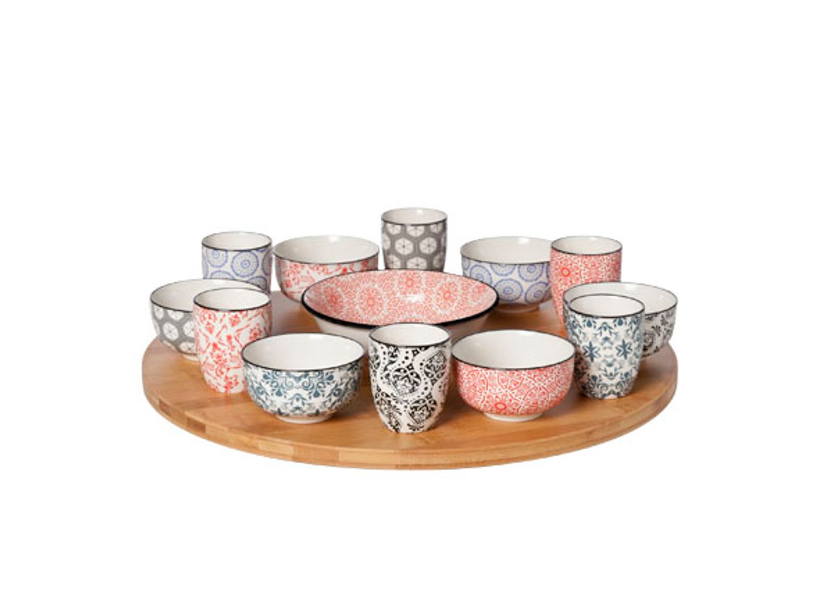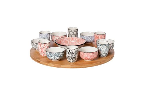Delirio 14-dlg Draaischotel D40cm Bamboe Bowl 6x 9x4,8 - 6x 5,6x6,7 - 1x 15x4,8