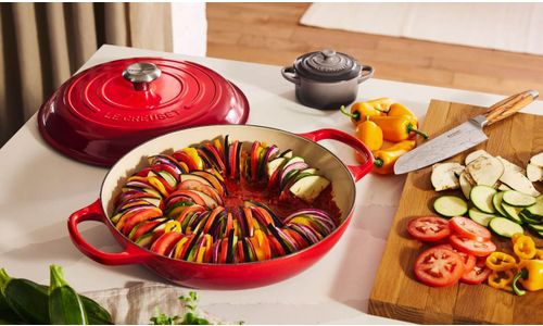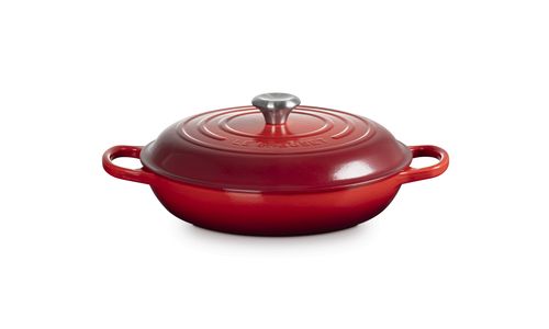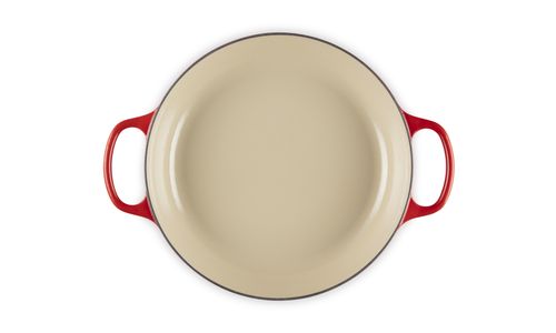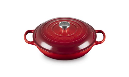 Onze gietijzeren producten zijn gemaakt in onze originele Franse gieterij en zijn een culinaire legende. Deze ondiepe stoofpan vormt daar geen uitzondering op. De grote platte vorm en de lage randen maken hem perfect om vlees en groenten te bruinen, stoofpotten te laten sudderen, te roerbakken en te bakken. Karamelliseren krijgt een extra dimensie, waardoor elke hap naar meer smaakt.