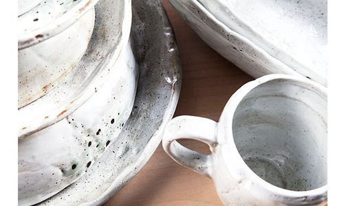 De Dolmen collectie doet haar naam alle eer aan, omdat alles in deze collectie, zowel de materiaallook, oneffenheden als organische vorm, aan steen doet denken. In aardewerk met een uitzonderlijke finesse, vergelijkbaar met deze van porselein.