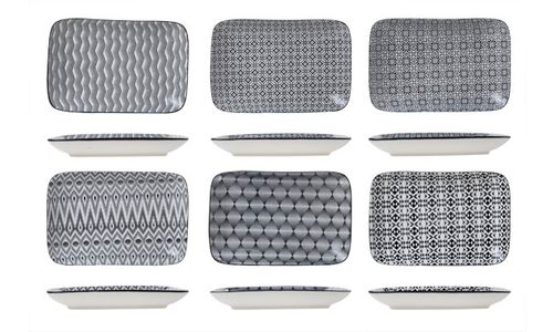 Nikko Black is een leuke serie met kommetjes, kopjes en rechthoekige schotels in wit porselein met zes verschillende zwarte geometrische patronen, die allemaal perfect samen passen op de koffietafel.