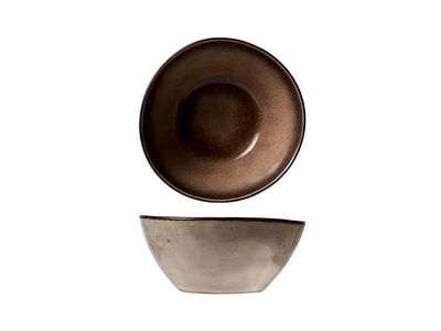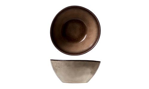 Een collectie met craquelé effect en organische vorm, geaccentueerd door een donkerdere rand. De rand heeft een zeer subtiel kleurverloop, in harmonie met de hoofdkleur. De kleur van de binnenkant komt terug in de buitenkant, die lichter is en een vlekeffect heeft.