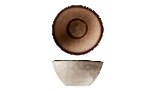 Een collectie met craquelé effect en organische vorm, geaccentueerd door een donkerdere rand. De rand heeft een zeer subtiel kleurverloop, in harmonie met de hoofdkleur. De kleur van de binnenkant komt terug in de buitenkant, die lichter is en een vlekeffect heeft.