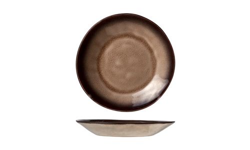 Een collectie met craquelé effect en organische vorm, geaccentueerd door een donkerdere rand. De rand heeft een zeer subtiel kleurverloop, in harmonie met de hoofdkleur. De kleur van de binnenkant komt terug in de buitenkant, die lichter is en een vlekeffect heeft.
