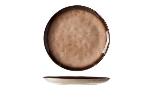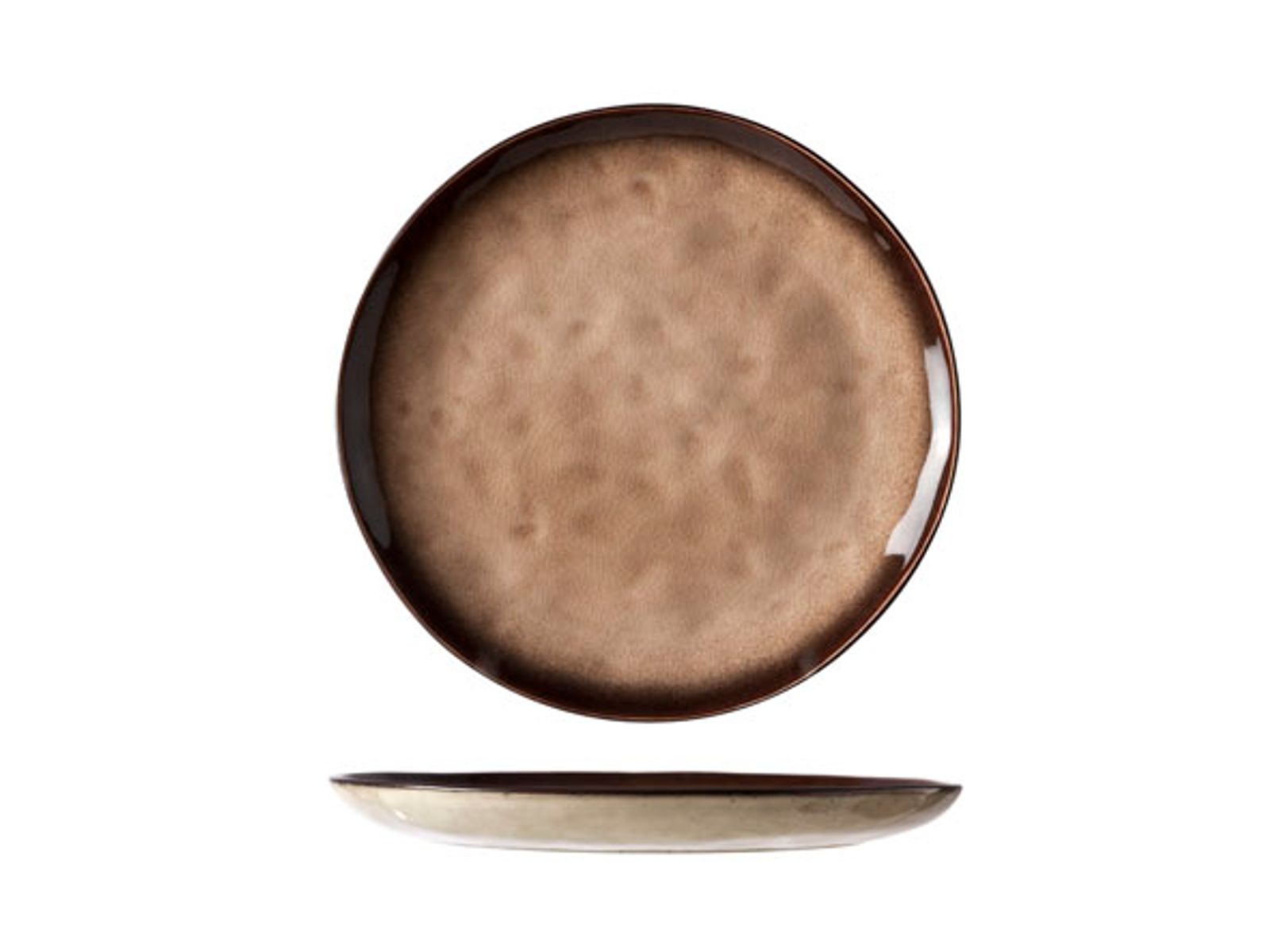 Een collectie met craquelé effect en organische vorm, geaccentueerd door een donkerdere rand. De rand heeft een zeer subtiel kleurverloop, in harmonie met de hoofdkleur. De kleur van de binnenkant komt terug in de buitenkant, die lichter is en een vlekeffect heeft.