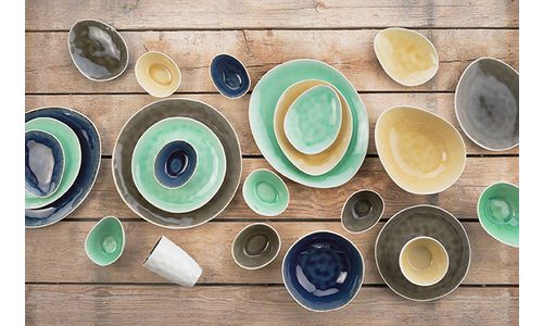 De Spirit Mustard serie heeft een subtiele craquelé look, bedekt met een gladde en blinkende glazuurlaag. De pastelkleur, de matte witte buitenkant en de ongedwongen natuurlijke vormen zijn een frisse en vrolijke combinatie. Dit breed gamma van borden, schaaltjes en kommetjes is gemaakt uit aardewerk.