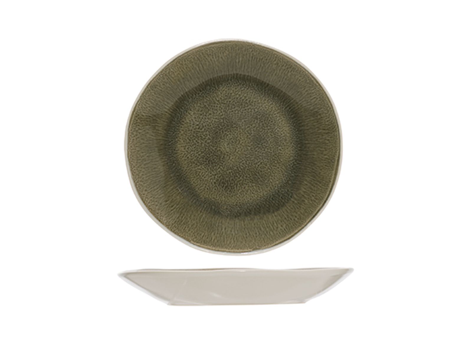 De Spirit Olive serie heeft een subtiele craquelé afwerking in eigentijdse en natuurlijke kleurschakeringen van mosgroen tot olijfgroen. De donkerdere binnenkant staat in scherp contrast met de buitenkant en opvallende rand in gebroken wit. Dit breed gamma van borden, schaaltjes en kommetjes is gemaakt uit aardewerk.