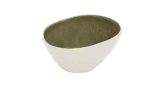 De Spirit Olive serie heeft een subtiele craquelé afwerking in eigentijdse en natuurlijke kleurschakeringen van mosgroen tot olijfgroen. De donkerdere binnenkant staat in scherp contrast met de buitenkant en opvallende rand in gebroken wit. Dit breed gamma van borden, schaaltjes en kommetjes is gemaakt uit aardewerk.