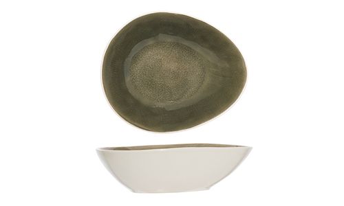 De Spirit Olive serie heeft een subtiele craquelé afwerking in eigentijdse en natuurlijke kleurschakeringen van mosgroen tot olijfgroen. De donkerdere binnenkant staat in scherp contrast met de buitenkant en opvallende rand in gebroken wit. Dit breed gamma van borden, schaaltjes en kommetjes is gemaakt uit aardewerk.