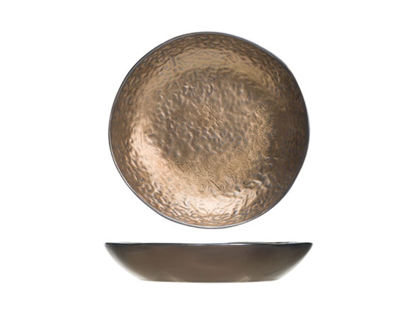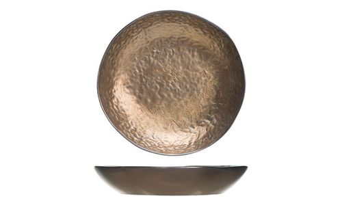 Keer terug naar de kopertijd met deze unieke bordenreeks van Cosy & Trendy. De reeks uit aardewerk heeft een realistische koperlook en -feel. De borden in drie verschillende formaten hebben allemaal een grillige vorm en een ruw reliëf, net als ambachtelijk servies uit handgeslagen koper.
