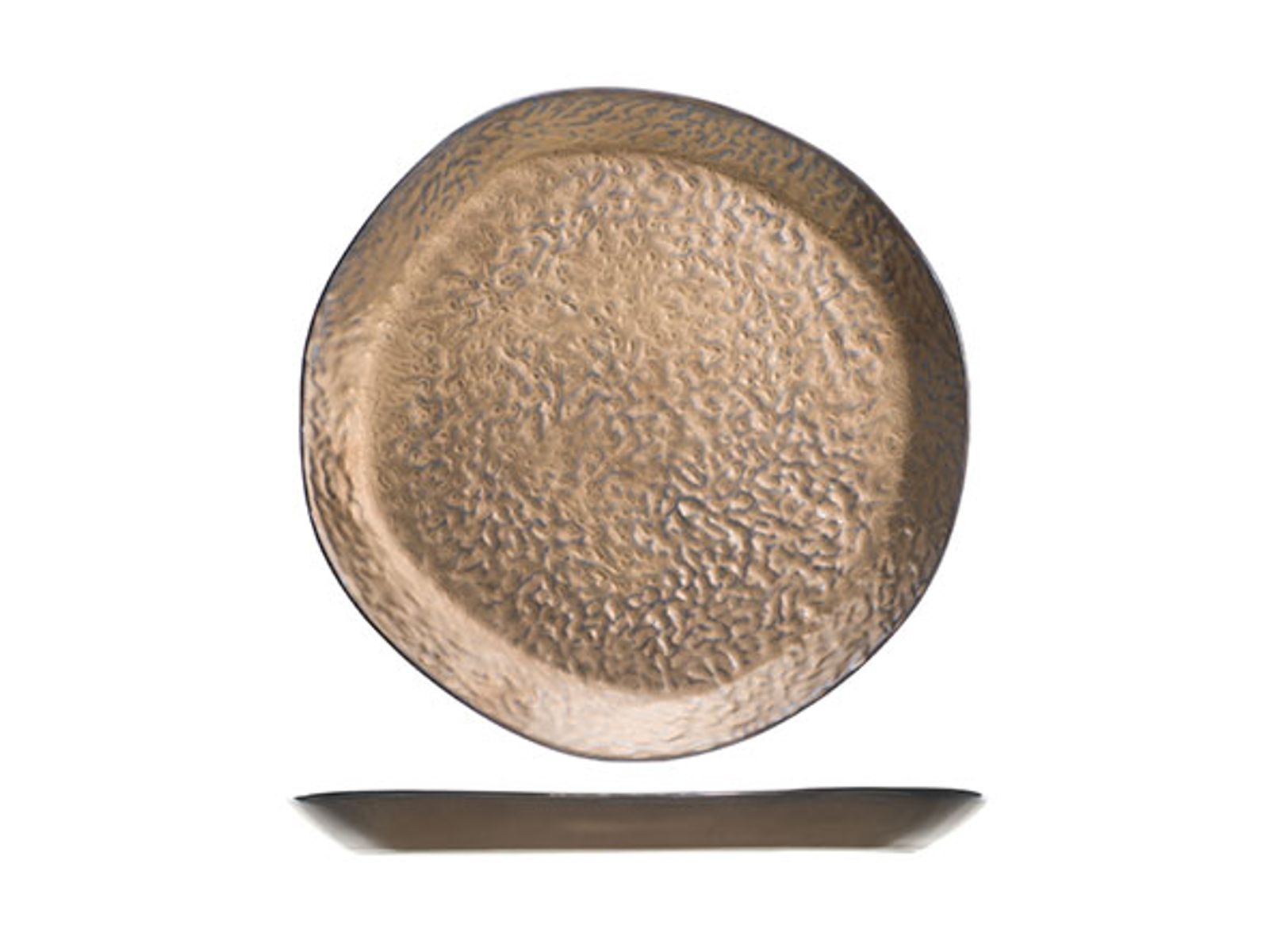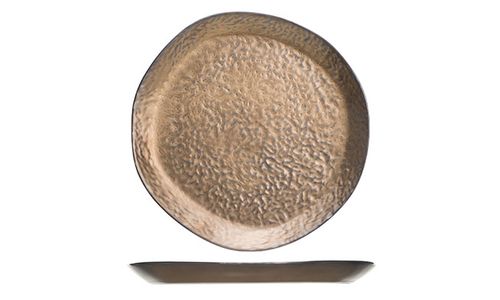 Keer terug naar de kopertijd met deze unieke bordenreeks van Cosy & Trendy. De reeks uit aardewerk heeft een realistische koperlook en -feel. De borden in drie verschillende formaten hebben allemaal een grillige vorm en een ruw reliëf, net als ambachtelijk servies uit handgeslagen koper.