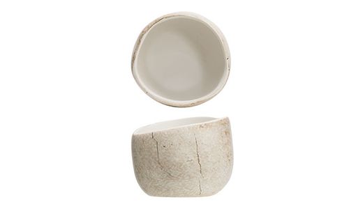 Deze nieuwe serviescollectie springt meteen in het oog. Natuurlijk en robuust zijn trefwoorden die kenmerkend zijn: geen traditionele witte cirkels maar wel opvallende organische vormen met een gedurfde gebarsten stenen look. Deze reeks is gemaakt uit aardewerk.