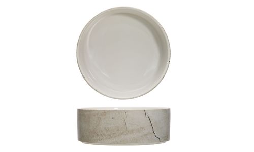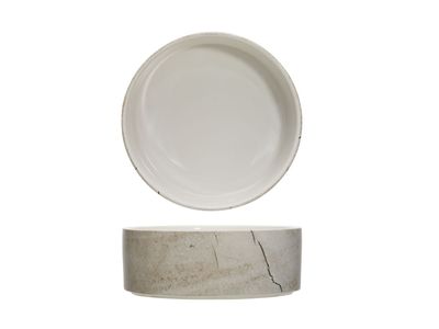 Deze nieuwe serviescollectie springt meteen in het oog. Natuurlijk en robuust zijn trefwoorden die kenmerkend zijn: geen traditionele witte cirkels maar wel opvallende organische vormen met een gedurfde gebarsten stenen look. Deze reeks is gemaakt uit aardewerk.