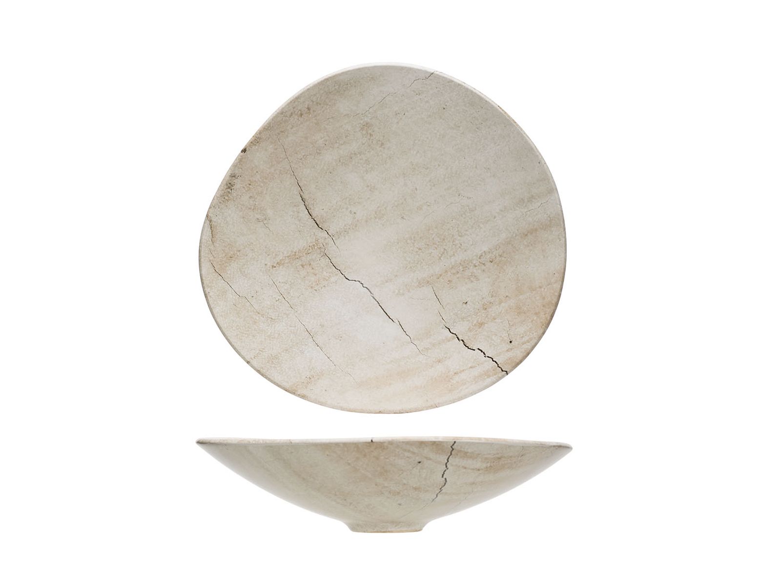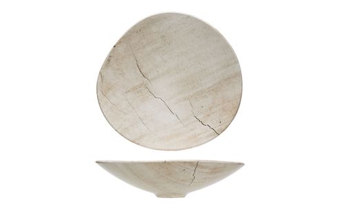 Deze nieuwe serviescollectie springt meteen in het oog. Natuurlijk en robuust zijn trefwoorden die kenmerkend zijn: geen traditionele witte cirkels maar wel opvallende organische vormen met een gedurfde gebarsten stenen look. Deze reeks is gemaakt uit aardewerk.