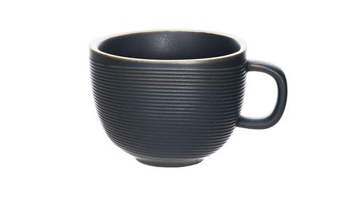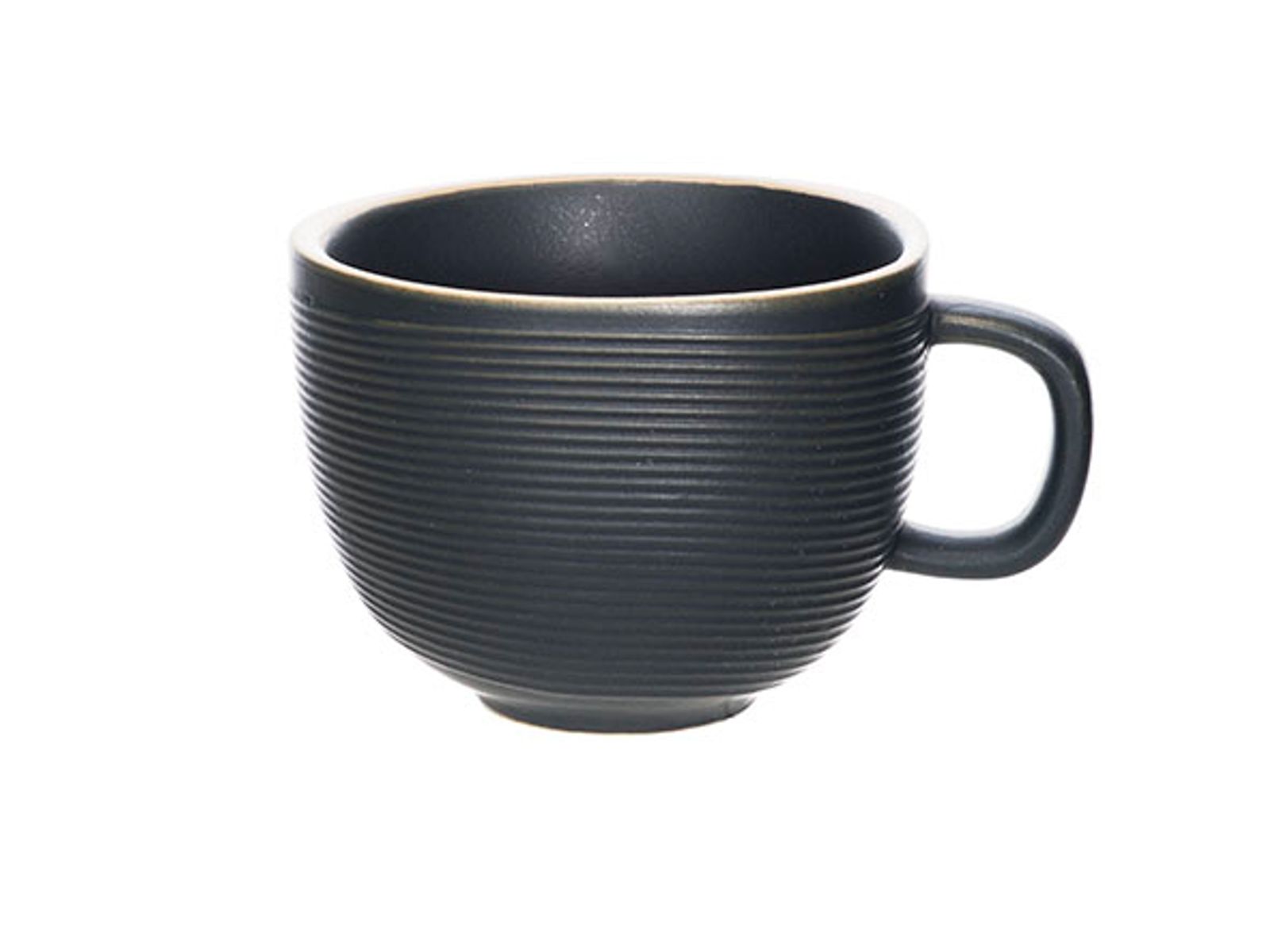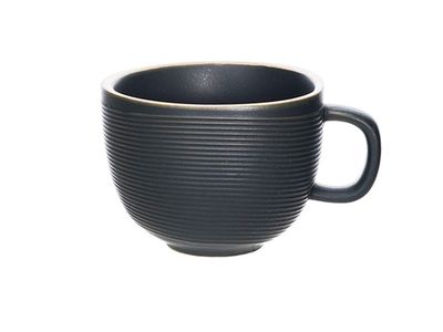 Galloway Black is een erg opvallende serviesreeks met enkele bijzondere kenmerken. Eerst en vooral is er de afwerking in zacht mat zwart. Bovendien zijn de kopjes, bekers en schaaltjes aan de buitenkant versierd met een brede strook ribbels. Daarnaast hebben de boorden een onregelmatige vorm en dikte, en worden ze nog extra geaccentueerd door de bleke kleur. Gemaakt uit aardewerk.