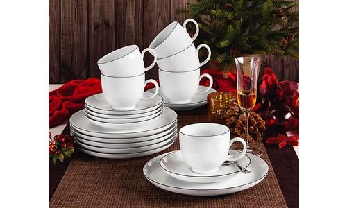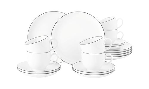Koffieservies bestaat uit 6 dessertborden (20cm) en 6 koffietassen (0,21l) en ondertassen (14,7cm)