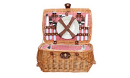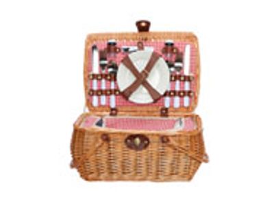 Picknickmand 4p-koelzak-bestek-borden- Wijnglazen-wijnopener-zoutvat 40x27x20c