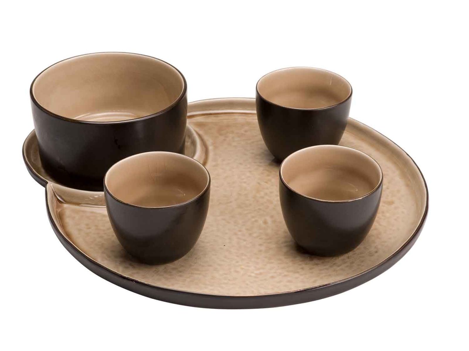 Laguna Beige Aperoset 5-delig Bord 31x26 1x Kom D11xh6cm - 3x Kom D7xh6cm