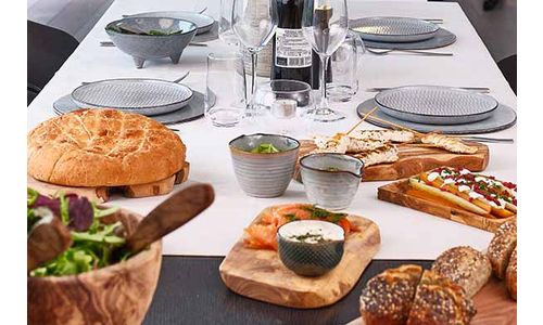 Geefuwtafeleenzomersemake-overmetkleurrijkeserveerschalen, prachtige planken en kommetjes in natuurlijk olijfhout met grillige vormen. Ook fijn glaswerk voor heerlijk ijsgekoelde dranken mag niet ontbreken, net als een vederlicht zomers porselein. Kies voor het tijdloze Oslo-servies of ga voor onze Loft-serie in talloze tinten grijsblauw.