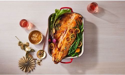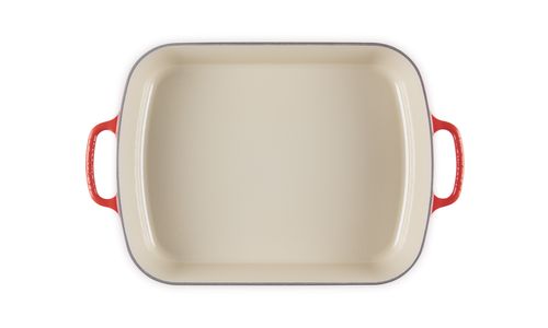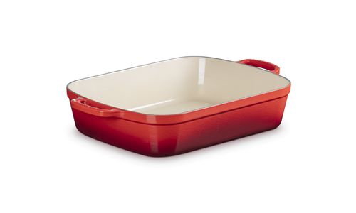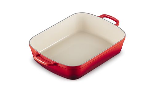 Er zijn maar weinig dingen zo bevredigend als wat ingrediënten in de oven plaatsen en vervolgens zien hoe ze transformeren. Deze veelzijdige geëmailleerde gietijzeren braadslede helpt u om heerlijke gerechten te bakken. De rechthoekige vorm is perfect voor allerlei gerechten, van vlees en aardappelen tot zelfgemaakte lasagne en crumble.